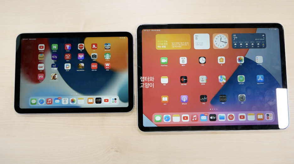 화면비가 4:3에 가까운 아이패드 프로보다 16:10에 가까운 미니 6세대가 상하 래터박스가 작은 것을 볼 수 있어요.