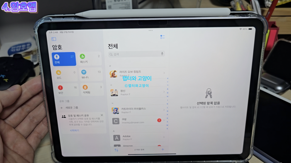 4번째로 암호앱입니다. 이번 iPad OS 18에서 새롭게 생긴 앱인데요.