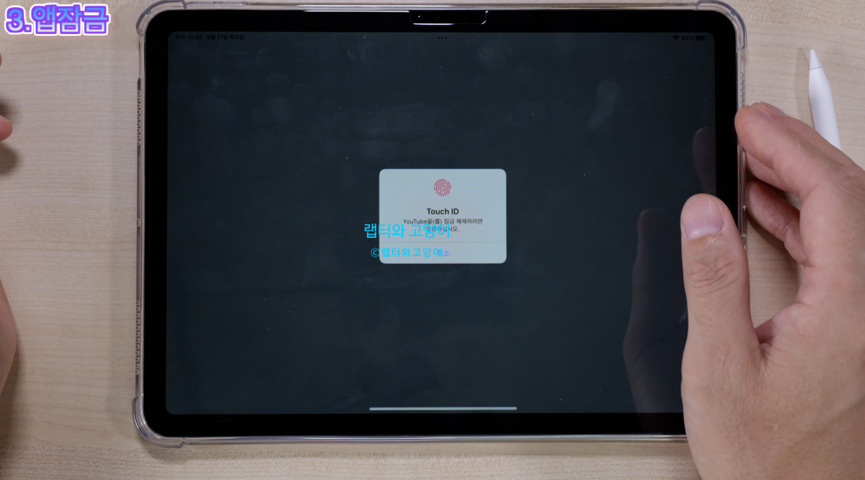 그러고 나서 다시 앱을 눌러보면 생체 인식을 해야 해당앱에 들어갈수 있습니다. 상당히 괜찮은 기능이죠. 왜냐하면 민감한 정보가 들어가있는 앱같은 경우 주변 사람들중에 내 아이패드를 잠깐 사용하면서 그 앱을 사용할수 있기때문이죠.