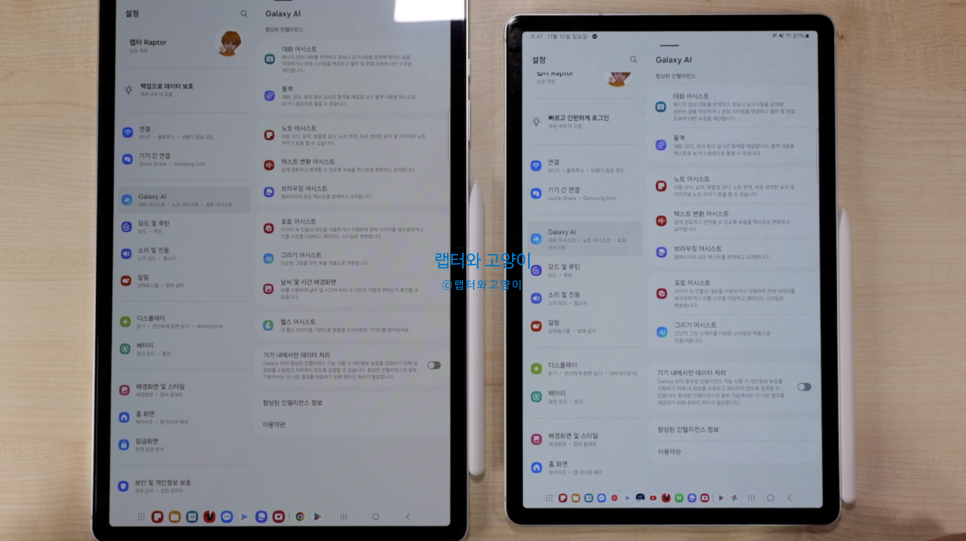 영상을 볼때는 이런 느낌입니다. 기본적으로 탭S10 플러스가 화면이 1.4인치나 더 크기 때문에 시원한 맛은 있습니다.