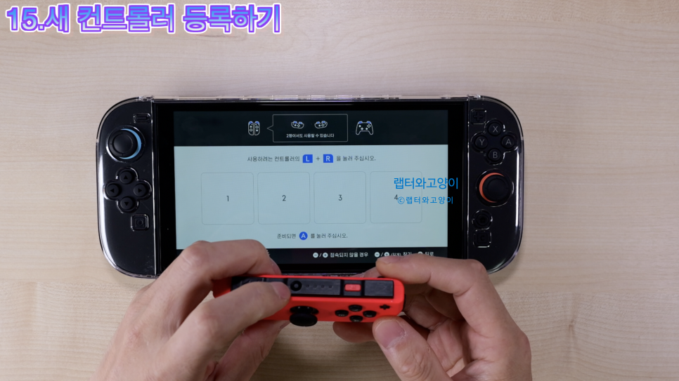 이렇게 연결된 조이콘은 다시 스위치1에 결합하면 자동으로 스위치1에 연결이 됩니다.