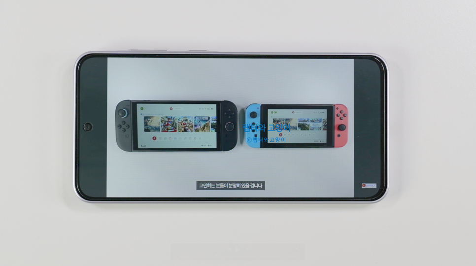 동영상을 볼때는 이런 느낌이고요. 앞에서도 말씀드렸지만 전작대비 0.1인치 더 커져서 6.7인치로 볼수 있습니다. 여기에 추가로 최대 밝기도 1200로 전작대비 200니트 더 밝아졌죠.