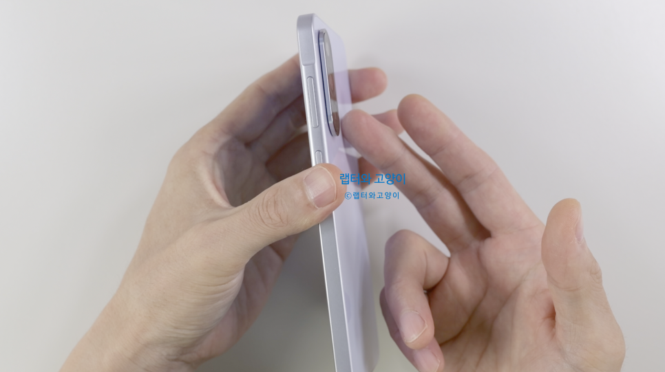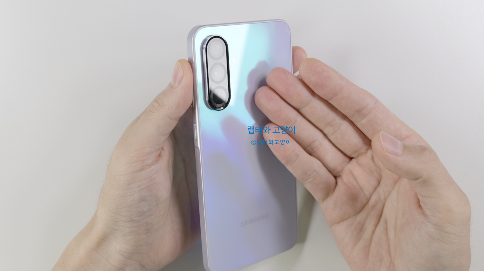 그리고 후면을 보면 어썸 라벤더 색상이고요. 이번에는 전작과는 다르게A34처럼 무지개 빛깔이 나도록 해놔서 색상은 정말 잘뽑아 낸것같습니다.A36의 라벤더 색상이 보는 각도에 따라서 색상이 계속 변하는 것도 마음에 들었습니다.