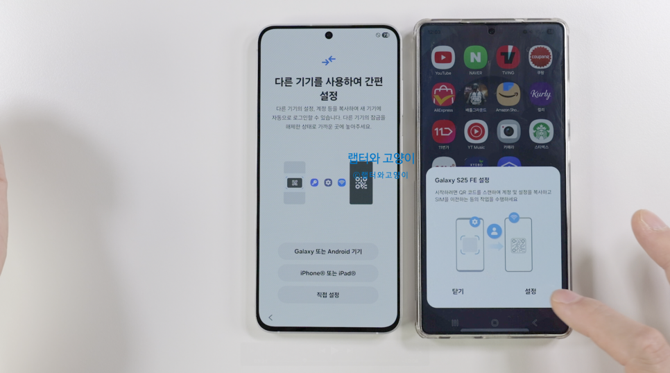 그럼 이제 셋팅을 해보겠습니다.그리고 기존에 사용하던 폰을 옆에 두면 이런 메시지가 뜹니다. 그리고 QR코드를 이용해서 기존에 있는 스마트폰으로 비춰주면 간편하게 로그인 절차를 마무리 할수 있습니다.