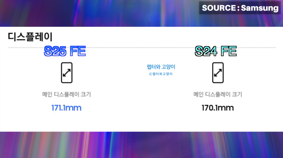 정리하자면 전작인 S24 FE와 바뀐 것이 없다는 말입니다.