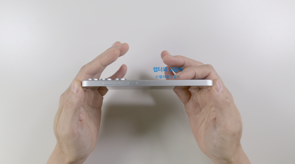 후면을 보면 아이스 블루 색상이 생각보다는 은은하게 잘 뽑아낸 것으로 보입니다. 네이비는 개인적으로 마음에 들지 않아서 아이스 블루 색상으로 선택했습니다.