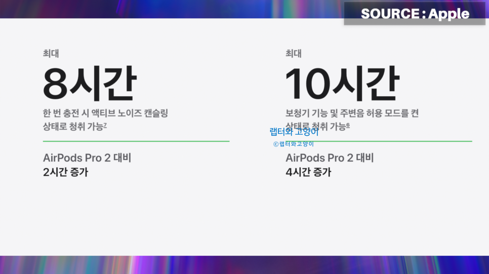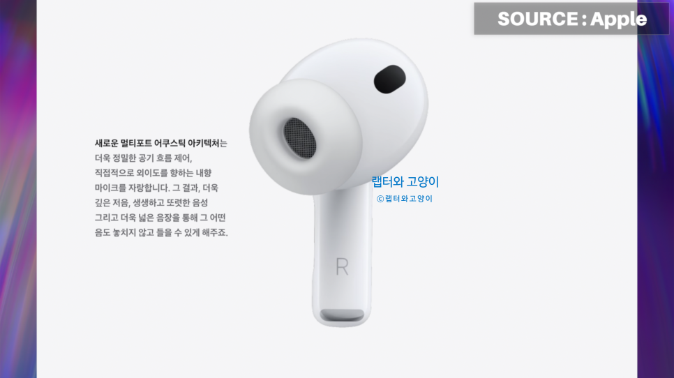사실 이번 프로3의 칩이 전작인 프로2와 동일한 애플 H2칩이 그대로 들어갔거든요. 하지만 드라이버를 완전히 새롭게 제작해서 음질을 더욱 좋게 튜닝을 했다고 합니다.