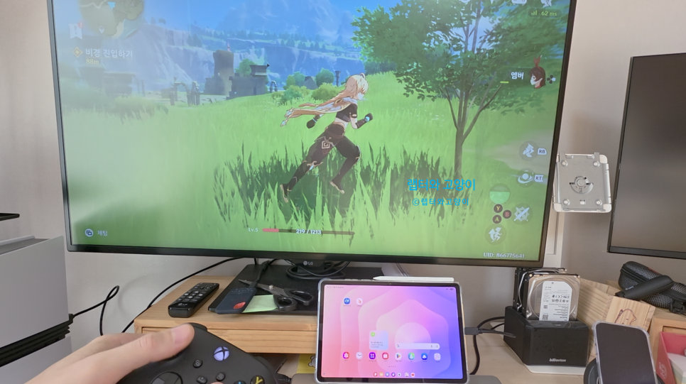 이렇게 게임패드를 이용해서 외부 디스플레이로 게임을 하다가 탭S11에서 공략집이나 다른 것을 검색하려고 터치를 하게되면 게임패드가 탭S11 본체에서 조작이되어 버립니다.