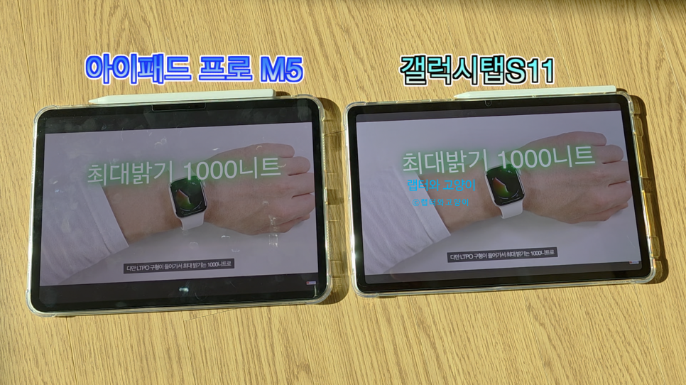 하지만 탭S9 대비 밝기는 더 밝아졌습니다. 기존 최대밝기가 750니트였는데요. 탭S11은 최대밝기가 1600니트로 2두배나 더 밝아졌습니다.