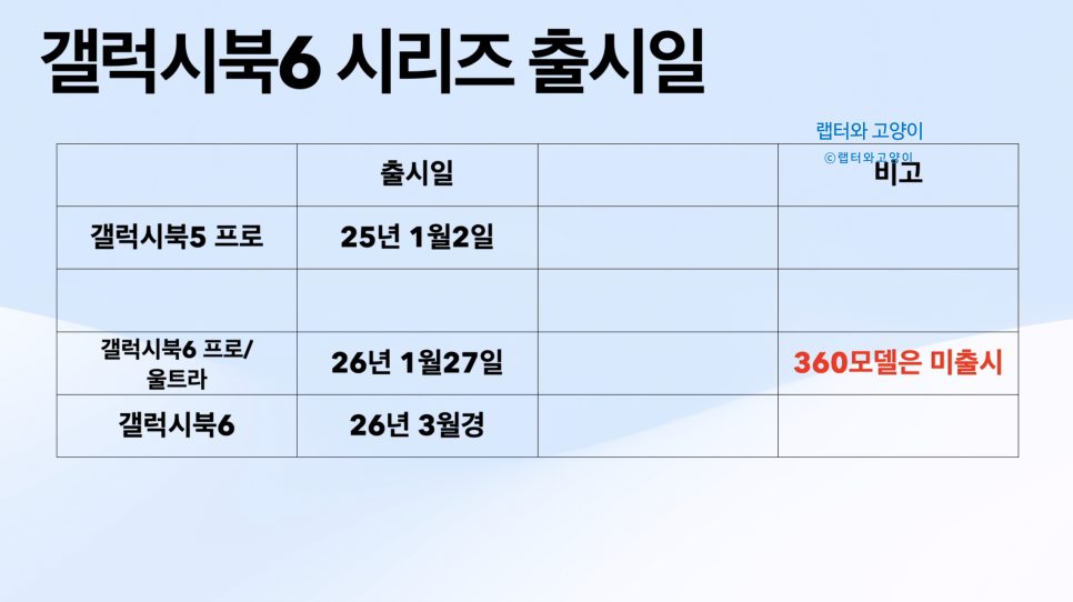 그런데 26년에는 갤럭시북6 시리즈의 출시가 늦어지고 있습니다.