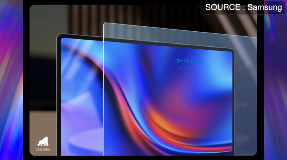 먼저 디자인입니다. 디스플레이는 16인치 다이나믹 아몰레드 2X 터치 스크린이 적용되었습니다. 물론 삼성디스플레이에서 공급하는 최신 디스플레이이고요. 삼성의 플래그쉽 노트북답게 다양한 최신기술이 적용되었습니다. DCI-P3를 지원하고요. 120Hz 화면주사율이 적용되었습니다.