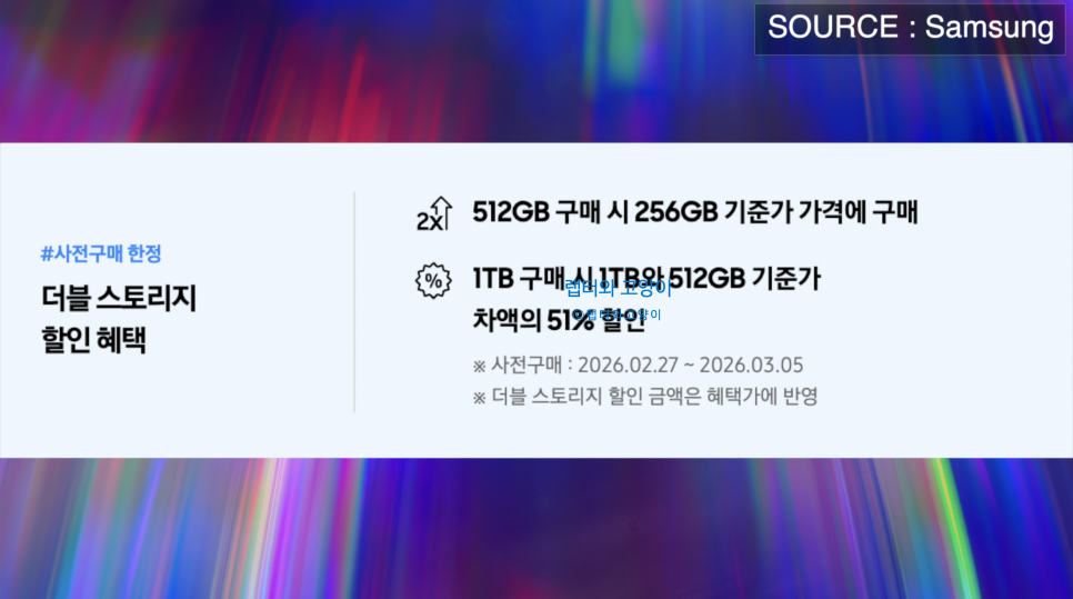 하지만 우리에게는 사전예약 혜택이 있거든요. 바로 더블스토리지혜택을 이용하면 됩니다. 그러니까 256GB를 구매하시면 512GB로 받을수 있기때문에 만약 스마트폰을 바꿀 거라면 무조건 지금 구매하시는것이 이득입니다.
