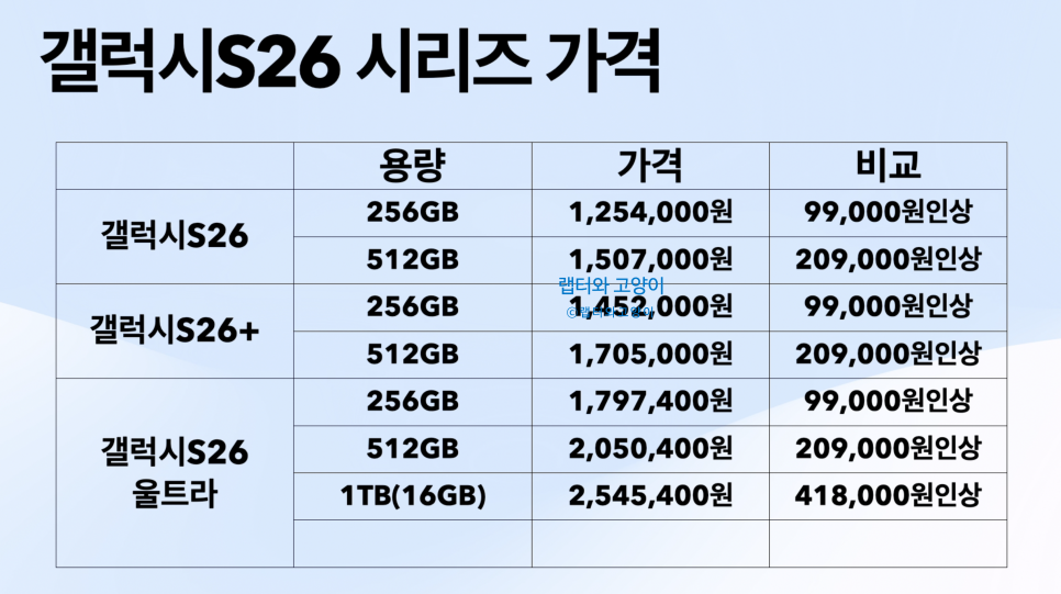 그리고 1TB는 울트라모델에만 있는데요. 전작대비 무려 418,000원이나 인상되었거든요.