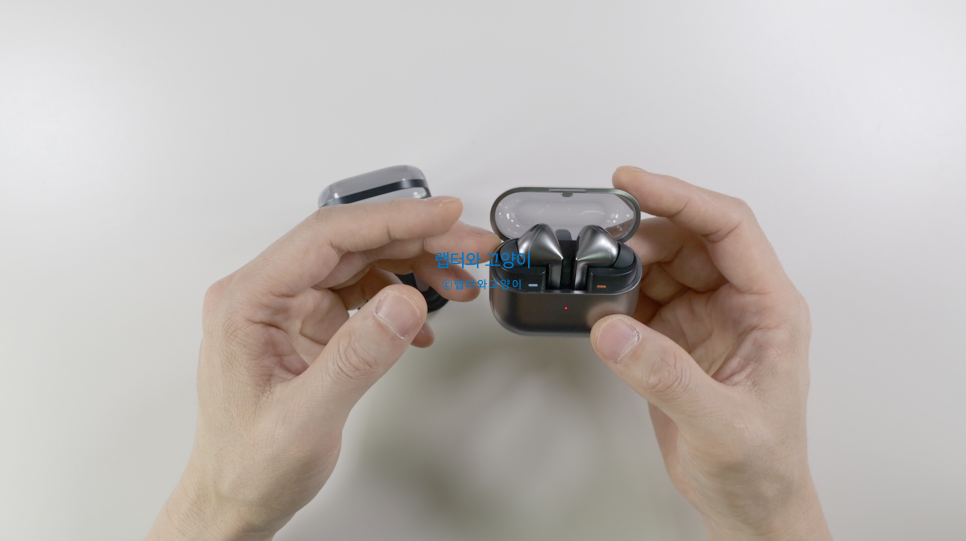 두 모델은 후속모델이 맞나싶을 정도로 정말 많이 바뀌었습니다. 일단 버즈3 프로는 에어팟 처럼 케이스를 세로로 바꾸면서 유닛 또한 세로로 집어넣는 방식으로 변경되었죠. 그래서 버즈2 프로의 클램쉘 타입을 버리고 케이스까지 완전히 바꿔버렸습니다.